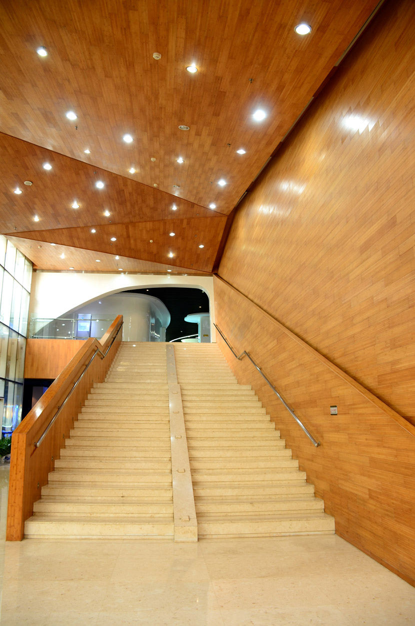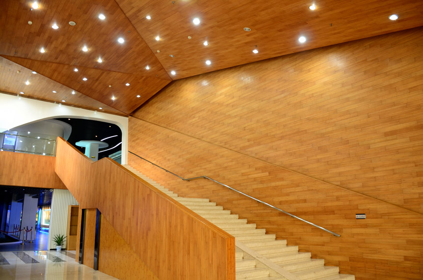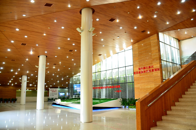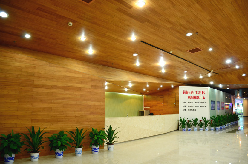 湖南湘江新區(qū)規(guī)劃展示館位于長(zhǎng)沙市瀟湘南大道383號(hào)(洋湖濕地公園東門對(duì)面),總建筑面積7000余平方米。展館成立于2011年6月,主要負(fù)責(zé)展示湖南湘江新區(qū)建設(shè)成就和發(fā)展規(guī)劃,是展示湖南湘江新區(qū)形象的重要窗口。展館大面積采用桃花江室內(nèi)竹材進(jìn)行裝飾,設(shè)計(jì)師運(yùn)用質(zhì)樸的天然竹材烘托出展館的綠色建筑理念和湖湘文化底蘊(yùn),使得展館更具品位。館內(nèi)竹材裝飾歷經(jīng)5年仍然保持良好狀態(tài),沒(méi)有任何發(fā)霉、變形和開(kāi)裂現(xiàn)象,有力證明了桃花江室內(nèi)裝飾竹材的高品質(zhì)。