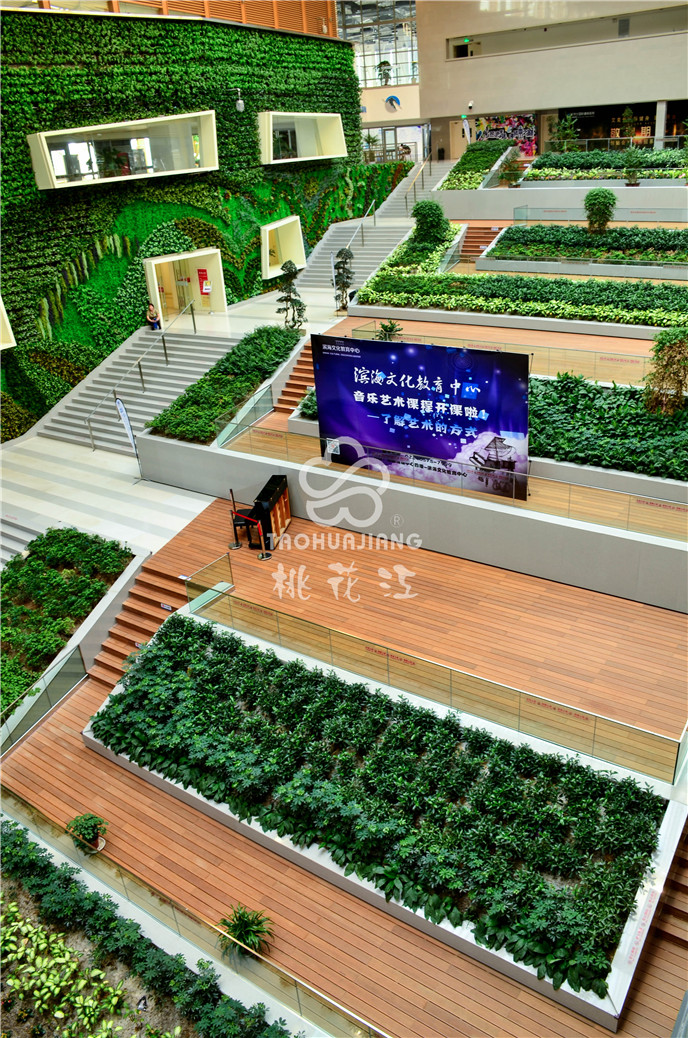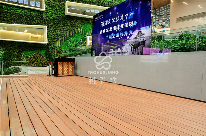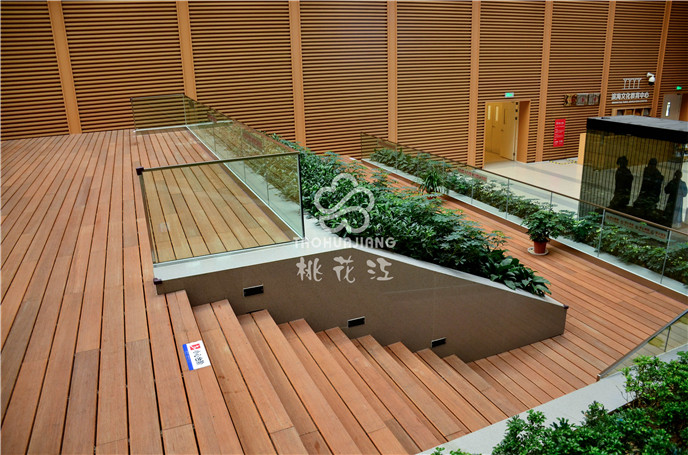 濱海新區(qū)文化中心項目中的市民活動中心區(qū)域采用桃花江戶外防腐竹地板。竹材深厚的文化底蘊與其優(yōu)異自然環(huán)保的性能一直是文化場館建設材料。