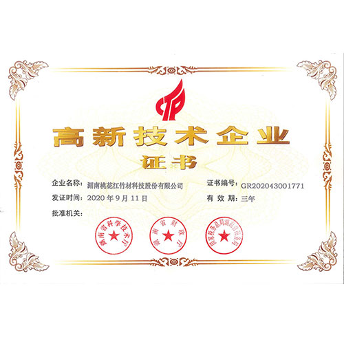 桃花江竹材連續(xù)12年都榮獲“高新技術(shù)企業(yè)”榮譽(yù)稱號(hào)。