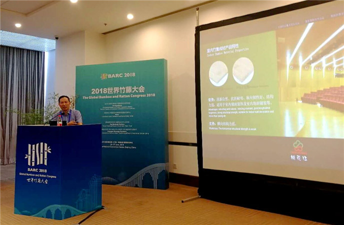 薛董以《竹建筑材料及其在城鎮(zhèn)化過程中的應(yīng)用潛力》為題,圍繞中國(guó)工業(yè)化以來(lái)企業(yè)運(yùn)用現(xiàn)代工藝技術(shù)及設(shè)備研發(fā)新的竹材產(chǎn)品,闡述在我國(guó)城鎮(zhèn)化建設(shè)過程中竹材新產(chǎn)品在室內(nèi)外的運(yùn)用以及未來(lái)的巨大潛力,結(jié)合豐富的案例展示了中國(guó)竹材產(chǎn)品的應(yīng)用成果及竹材應(yīng)用的發(fā)展趨勢(shì)。薛董的演講得到了來(lái)自世界各地的科研院所、高校、企業(yè)界的100多位代表的廣泛關(guān)注。